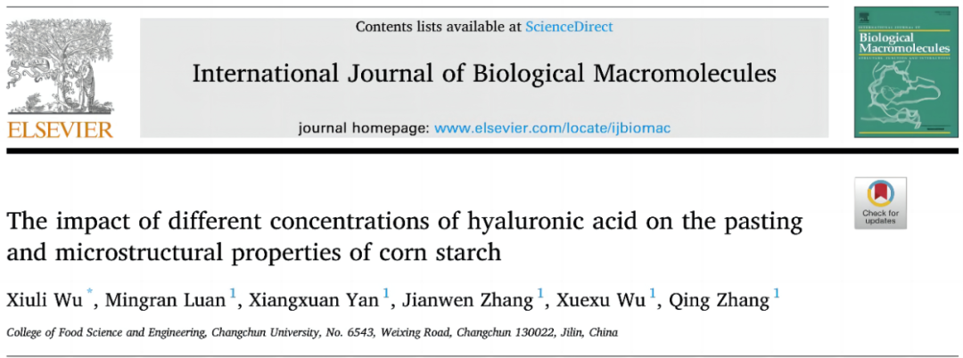 文献解读 | 不同浓度透明质酸对玉米淀粉糊化及微观结构特性的影响