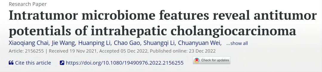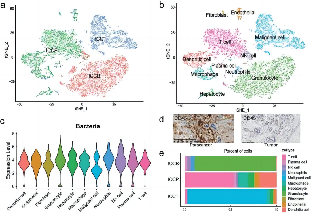 肝内胆管癌(ICC)是一种罕见的恶性肿瘤,在中国发病率很高。先前有研究认为,肿瘤内部的微生物可独立产生抗癌作用,且不同类型的肿瘤甚至具有其独特的群落结构,但细菌具体的生物学功能仍需进一步研究。
