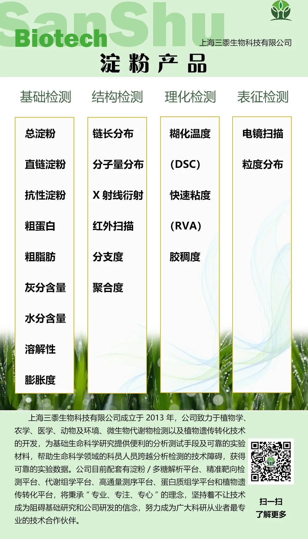 三黍生物十年淀粉检测经验,可以提供专业的淀粉检测服务;一流的博硕技术团队,帮助客户轻松获得高质量数据并辅助数据解读。更多精彩欢迎关注我们公众号查看更多推文或者联系我们哦~