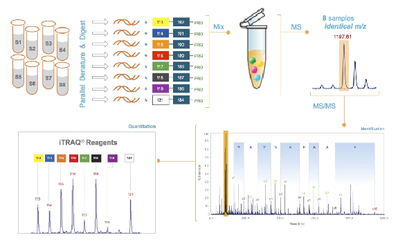 标记定量蛋白质组学是指用同位素对蛋白质组进行标记的情况下对蛋白组进行定量分析,分为体内标记(SILAC技术)和体外标记(TMT和iTRAQ技术),三黍生物提供基于质谱的iTRAQ/TMT标记定量蛋白质组学的分析。