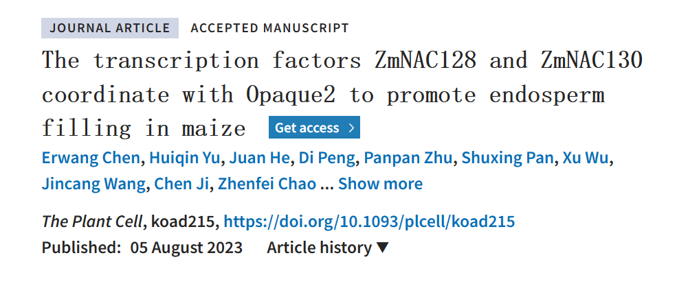 21.《Plant Cell:转录组与蛋白组联合解析转录因子ZmNAC128 和ZmNAC130调控玉米籽粒灌浆的分子机制》