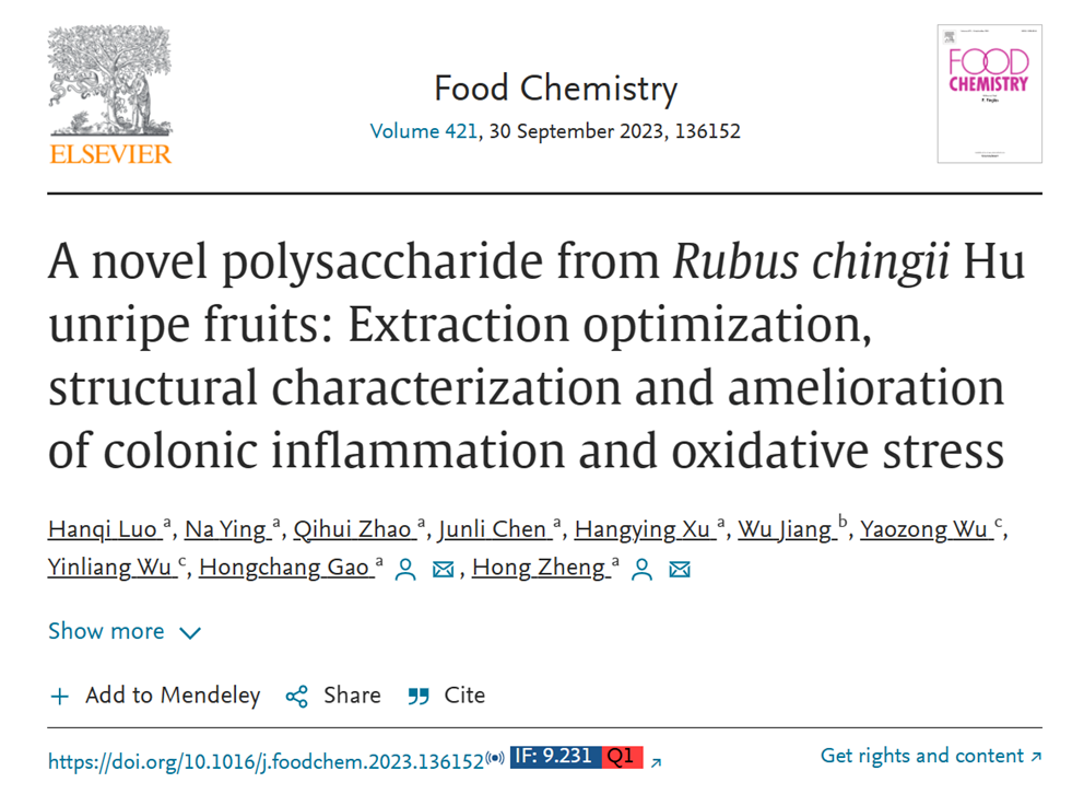12.《Food Chem:一种能够改善高脂饮食导致的结肠炎症和氧化损伤的新型覆盆子多糖》