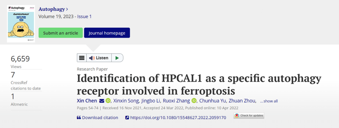 6.《AUTOPHAGY(13.391) 蛋白质组学揭示HPCAL1为铁死亡的特异性自噬受体》