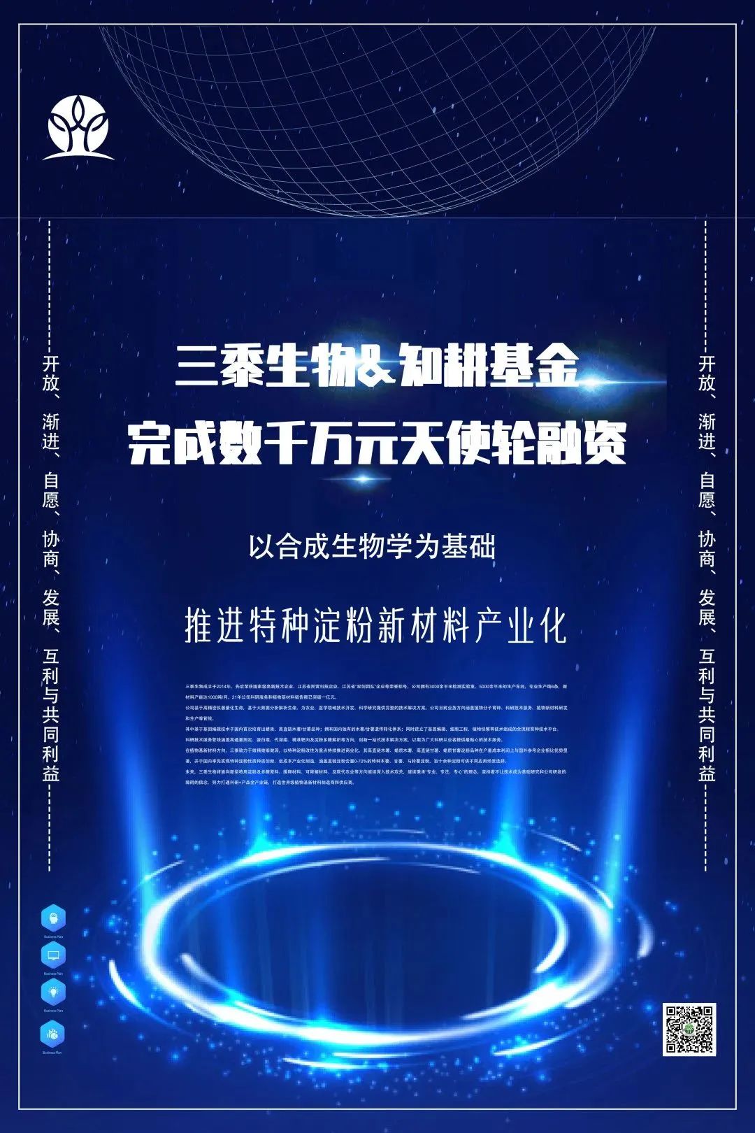 江苏三黍生物科技有限公司宣布完成数千万元天使轮融资,此轮融资由知耕基金独家投资,资金将用于推动分析检测技术平台扩建,加快植物基新材料产品研发及产业链布局。