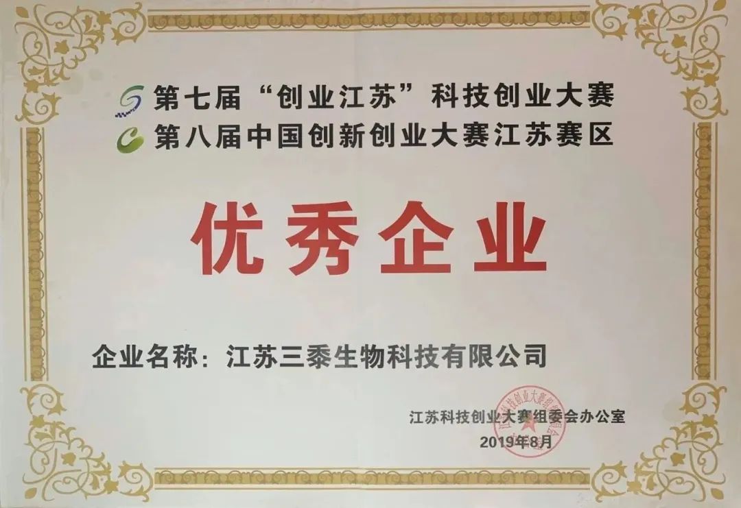 第七届“创业江苏”科技创业大赛、 第八届中国创新创业大赛江苏赛区优秀企业证书