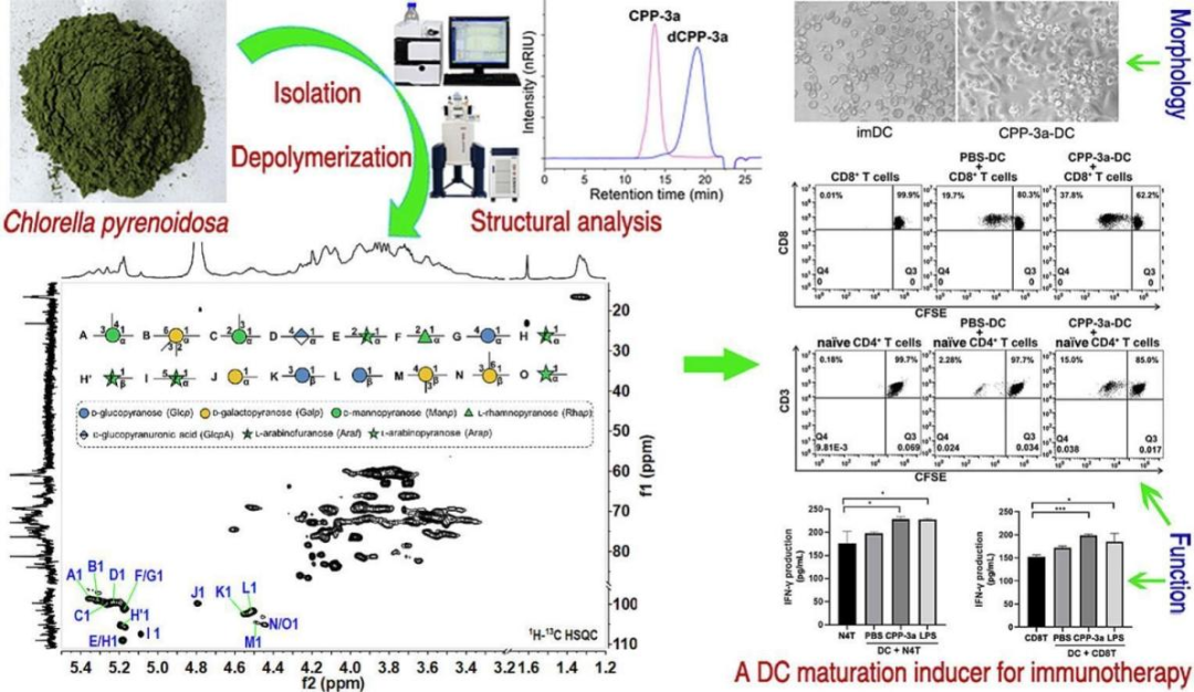 题目:Structural characterization of a Chlorella heteropolysaccharide by analyzing its depolymerized product and finding an inducer of human dendritic cell maturation
