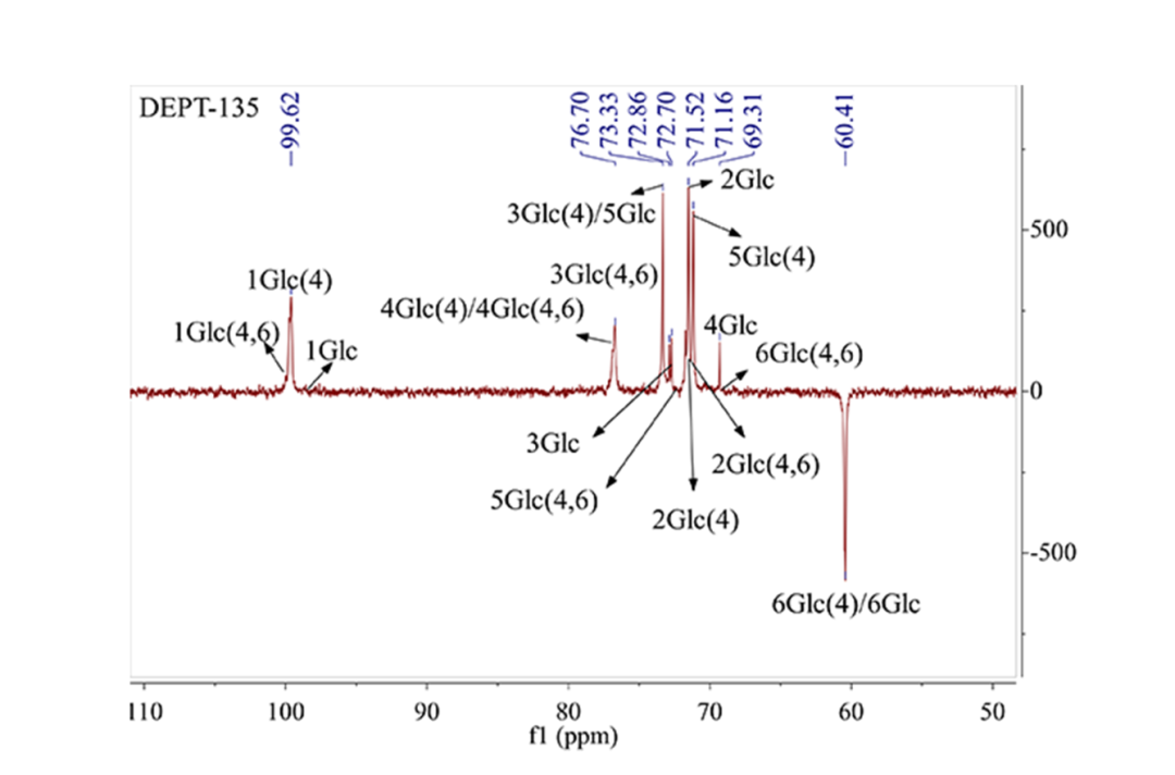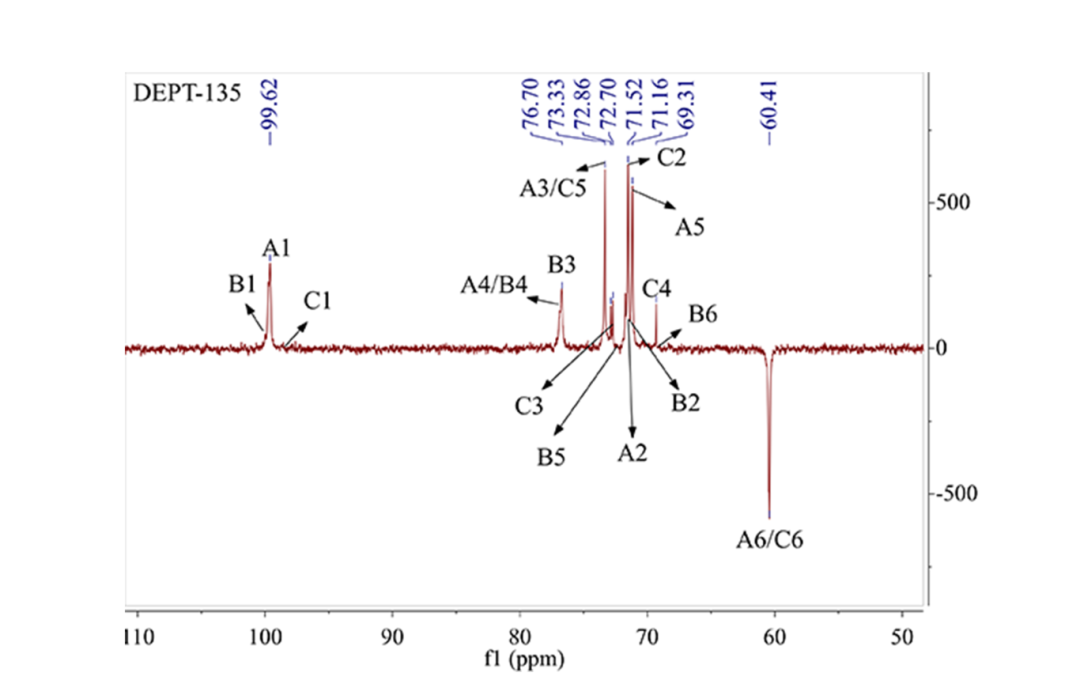 糖类化合物由于分子量大,其结构分析一直以来都是工作难点。新增的两张图谱(DEPT135、TOCSY)为多糖分析提供了更多的信息,进一步验证解析结果的准确性,使研究内容更加丰富可信。