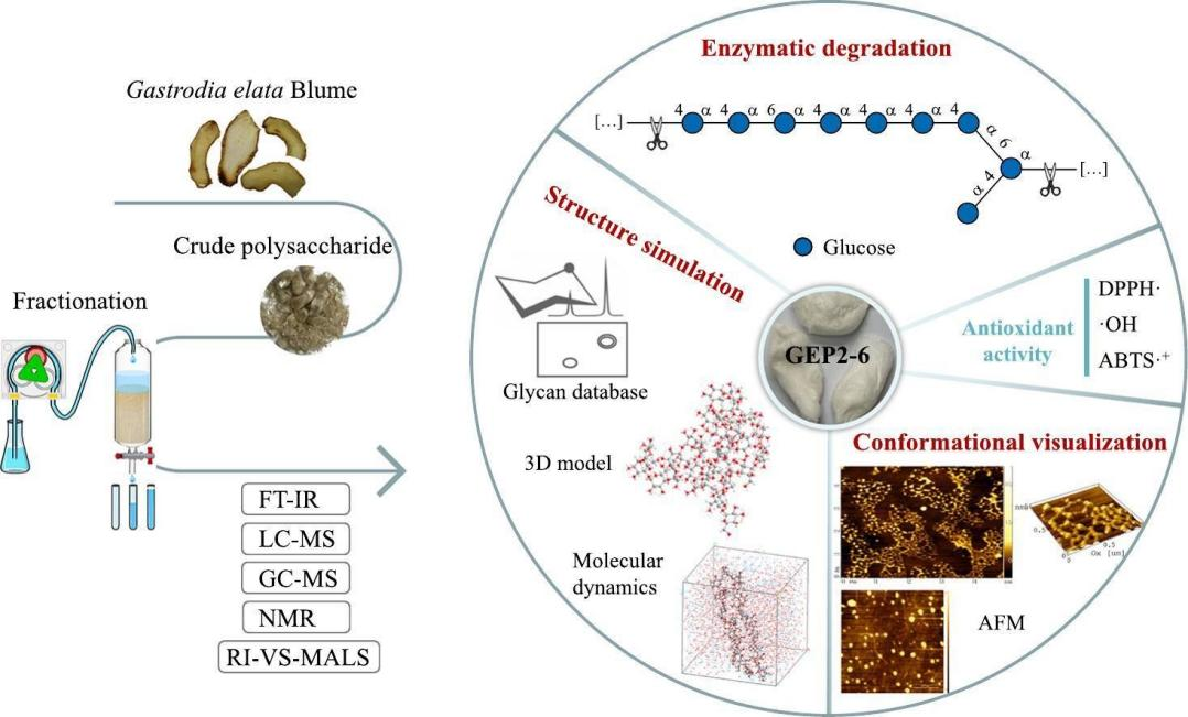 题目:Structural characterization, molecular dynamic simulation, and conformational visualization of a water-soluble glucan with high molecular weight from Gastrodia elata Blume