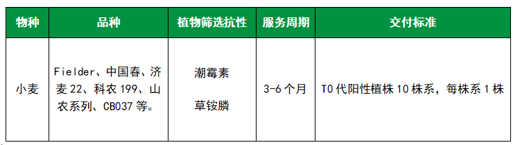 经过长期的发展,已经成为世界上分布最广、面积最大、总产量第二、贸易额最多、营养价值最高的粮食作物之一。公司提供多种小麦遗传转化服务。